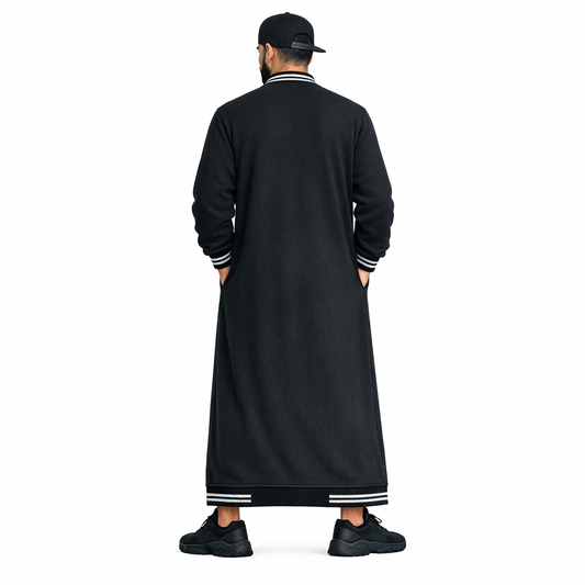 Donchie Men's Black Bomber Jubbah Thobe Cotton Fleece