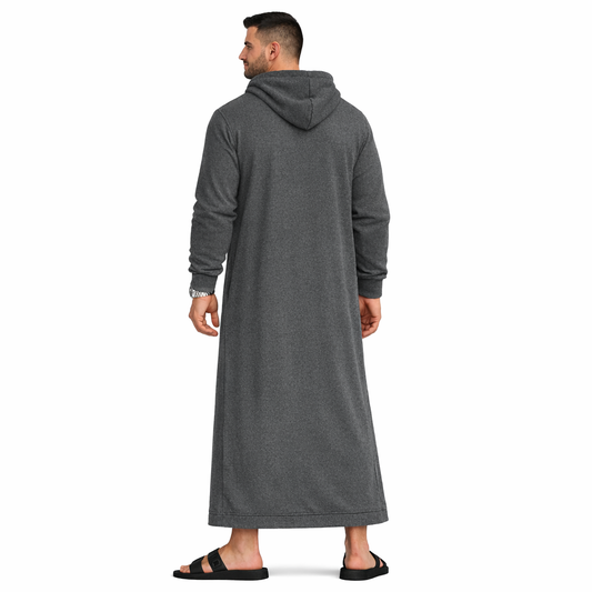 Donchie Men's Charcoal Grey Hoodie Jubbah Thobe Cotton Fleece