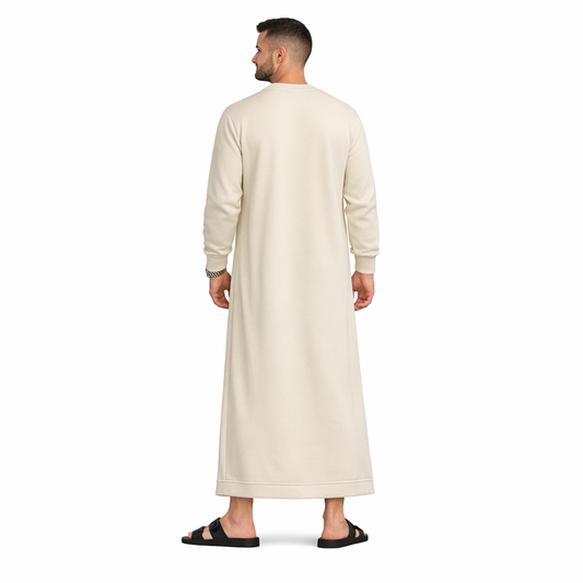 Donchie Men's Cream Sweatshirt Thobe Jubbah Cotton Fleece