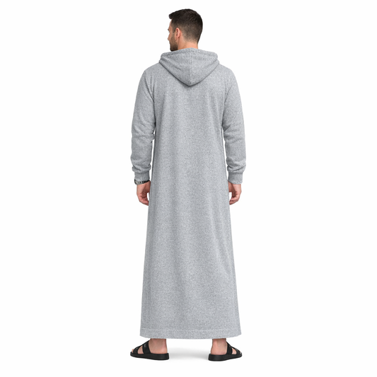 Donchie Men's Grey Hoodie Jubbah Thobe Cotton Fleece