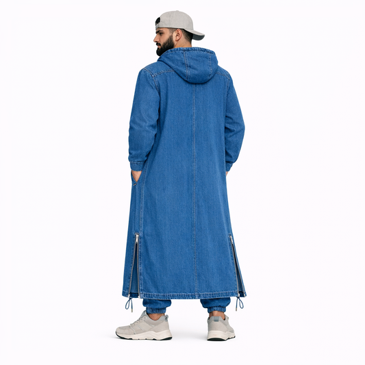 Donchie Men's Blue Jean Jubbah Thobe Cotton Fleece